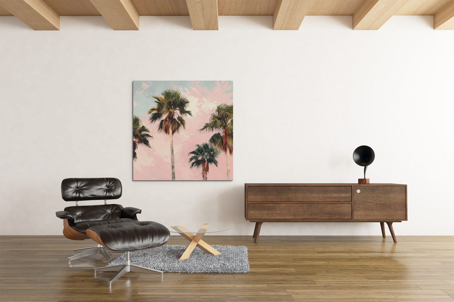 Vibrant Wall Art Print, Abstract Palm Tree Canvas, Retro Beach Decor, Tropical Home Decoration, Colorful Art for Living Room